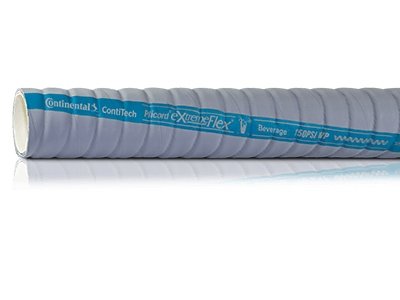 Manguera de alta flexibilidad para plantas de transferencia de cerveza, vino y líquidos comestibles. Facilita las conexiones en espacios reducidos.